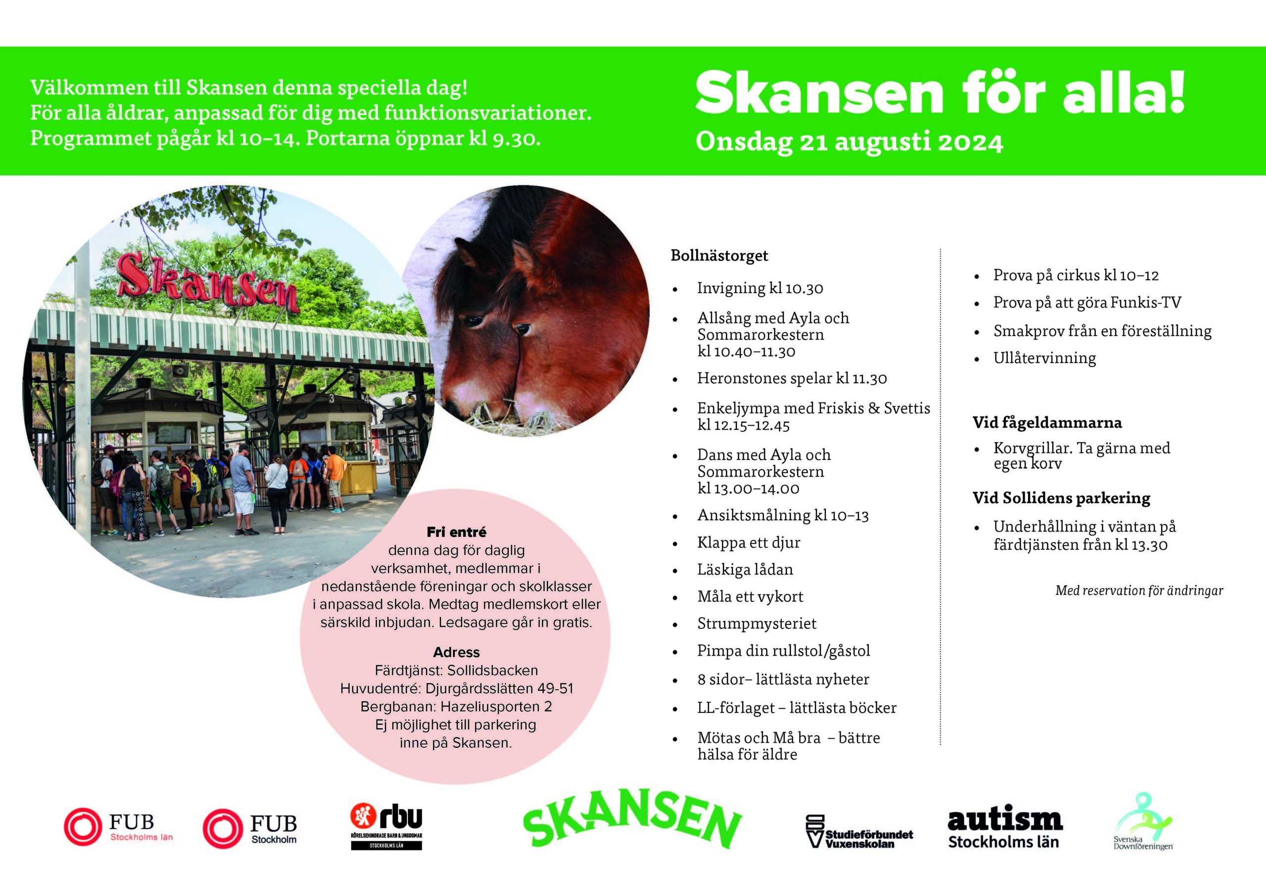 Onsdag den 21 augusti deltar RBU Stockholm, tillsammans med många olika funktionsrättsföreningar, på dagen ”Skansen för alla”.